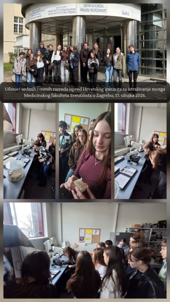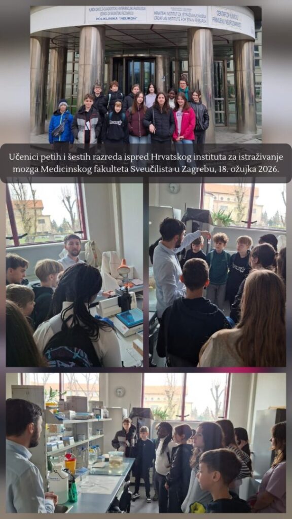 Na manifestaciju posvećenu istraživanju ljudskog mozga i utjecaja fizičke aktivnosti na učenje i mentalno zdravlje uputili su se 17. ožujka učenici sedmih i osmih razreda, a 18. ožujka petih i šestih razreda OŠ dr. Ante Starčevića u pratnji učiteljice biologije i kemije Jasmine Šilić, prof. mentor.