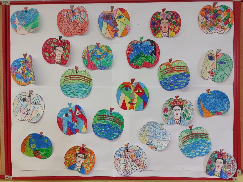 Proučavali su rad likovnih umjetnika (F. Kahlo, V. van Gogha, J. Pollocka i P. Picassa) i oslikali jabuku.